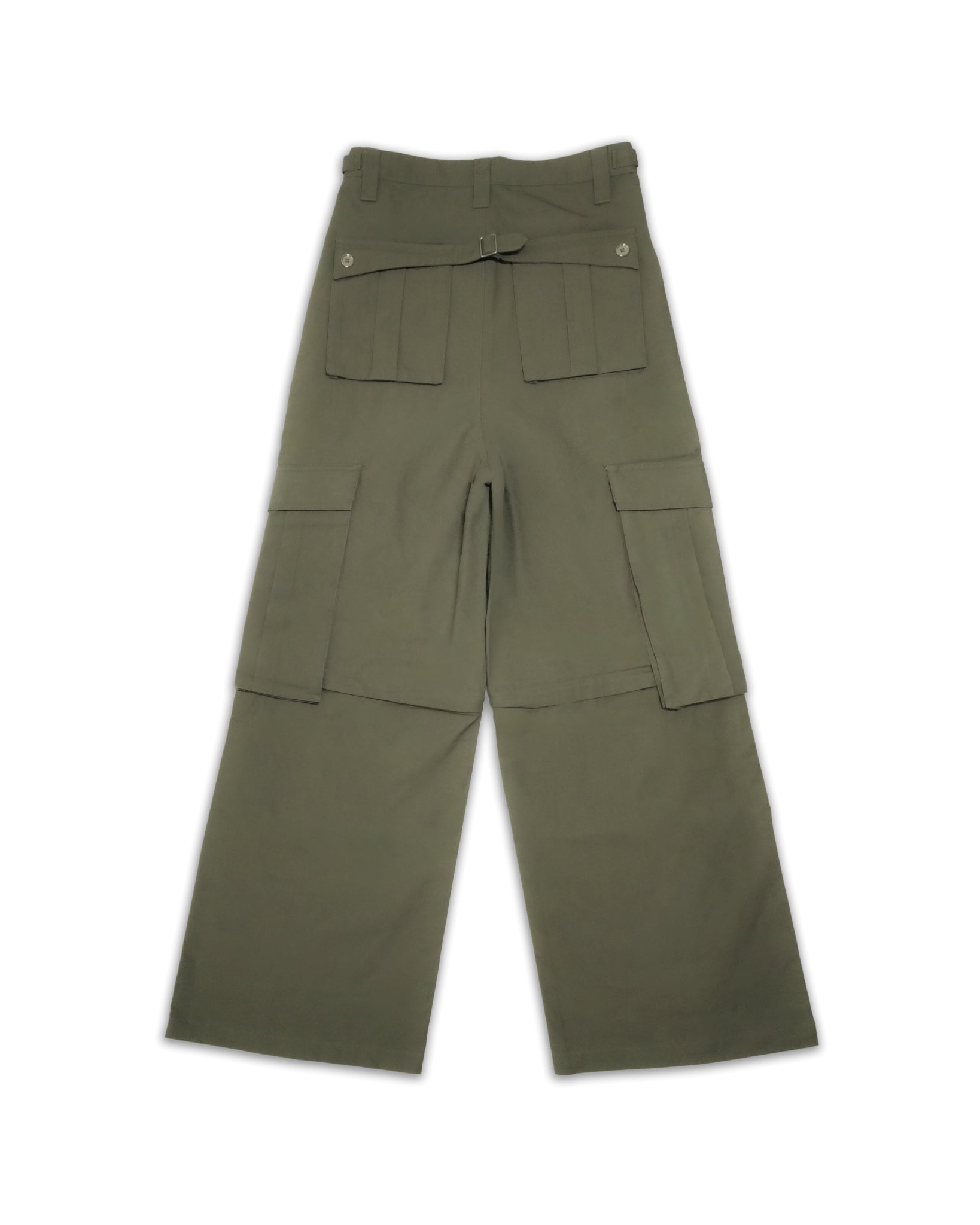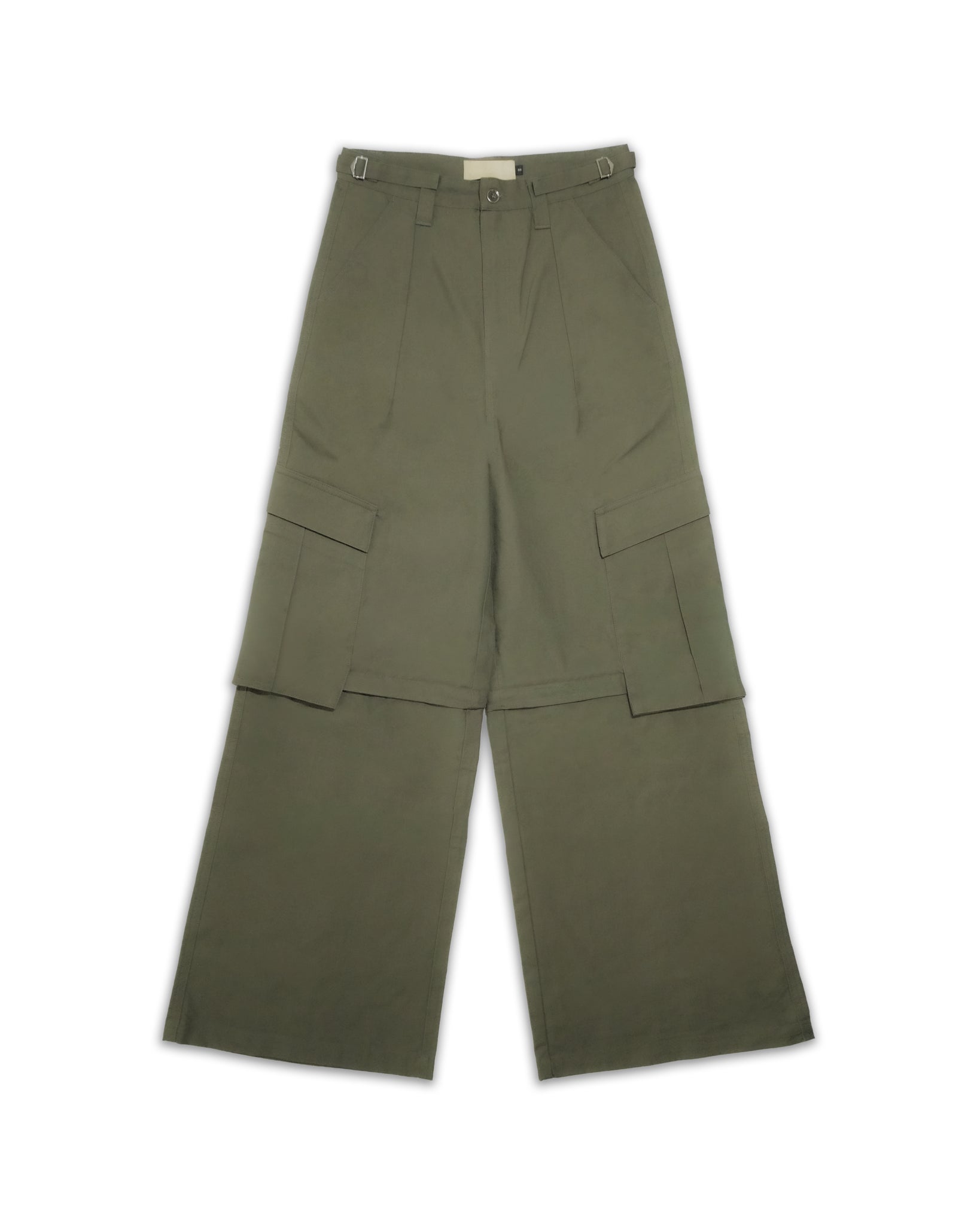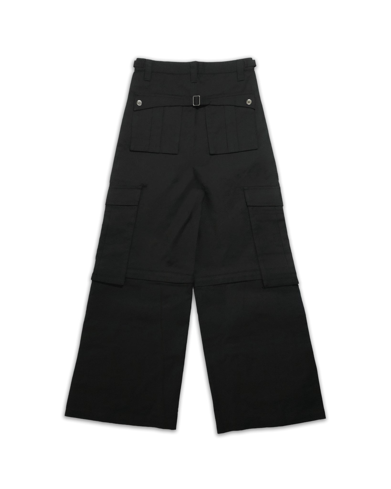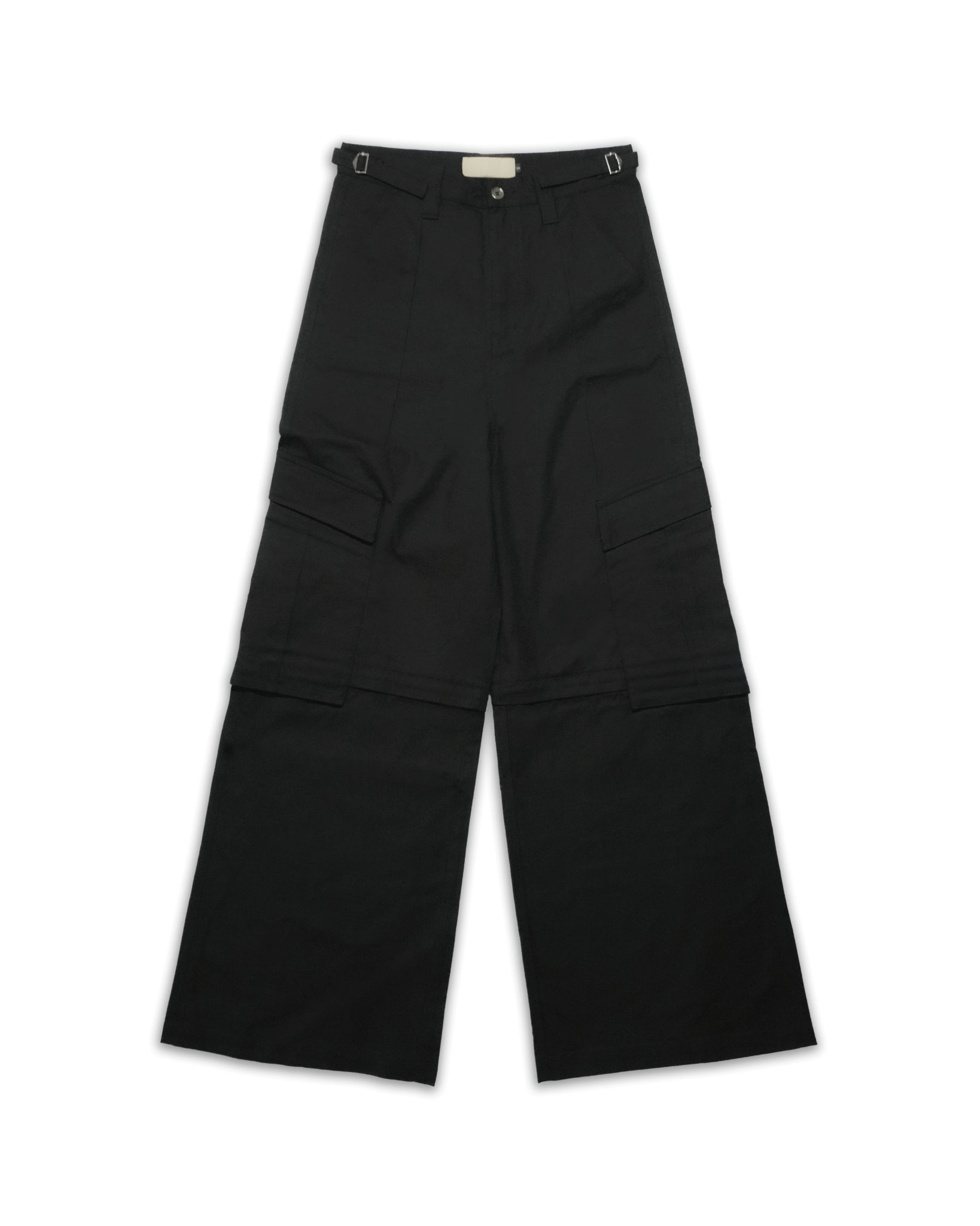 baggy fit, unzips into shorts, waist adjusters, back buckle, 100% cotton ripstop